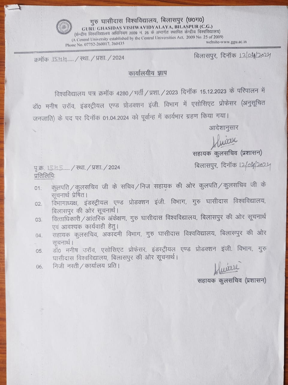 Research Supervisor Order of Dr. Ganesh Shukla 10 Jan 2022