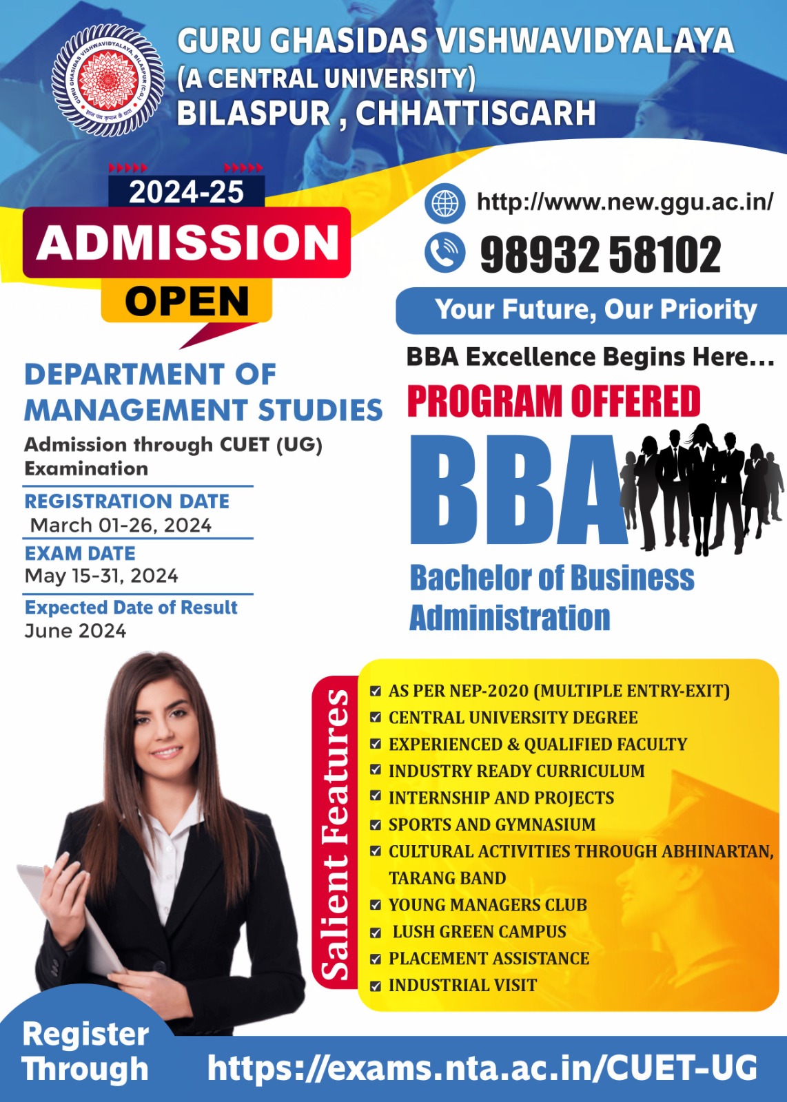 - Eligibility: Graduation in any discipline with minimum 50% marks in aggregate (45% for SC/ST candidate), CUET 2022 PG Score conducted by NTA, New Delhi and as per Govt. of India rules.