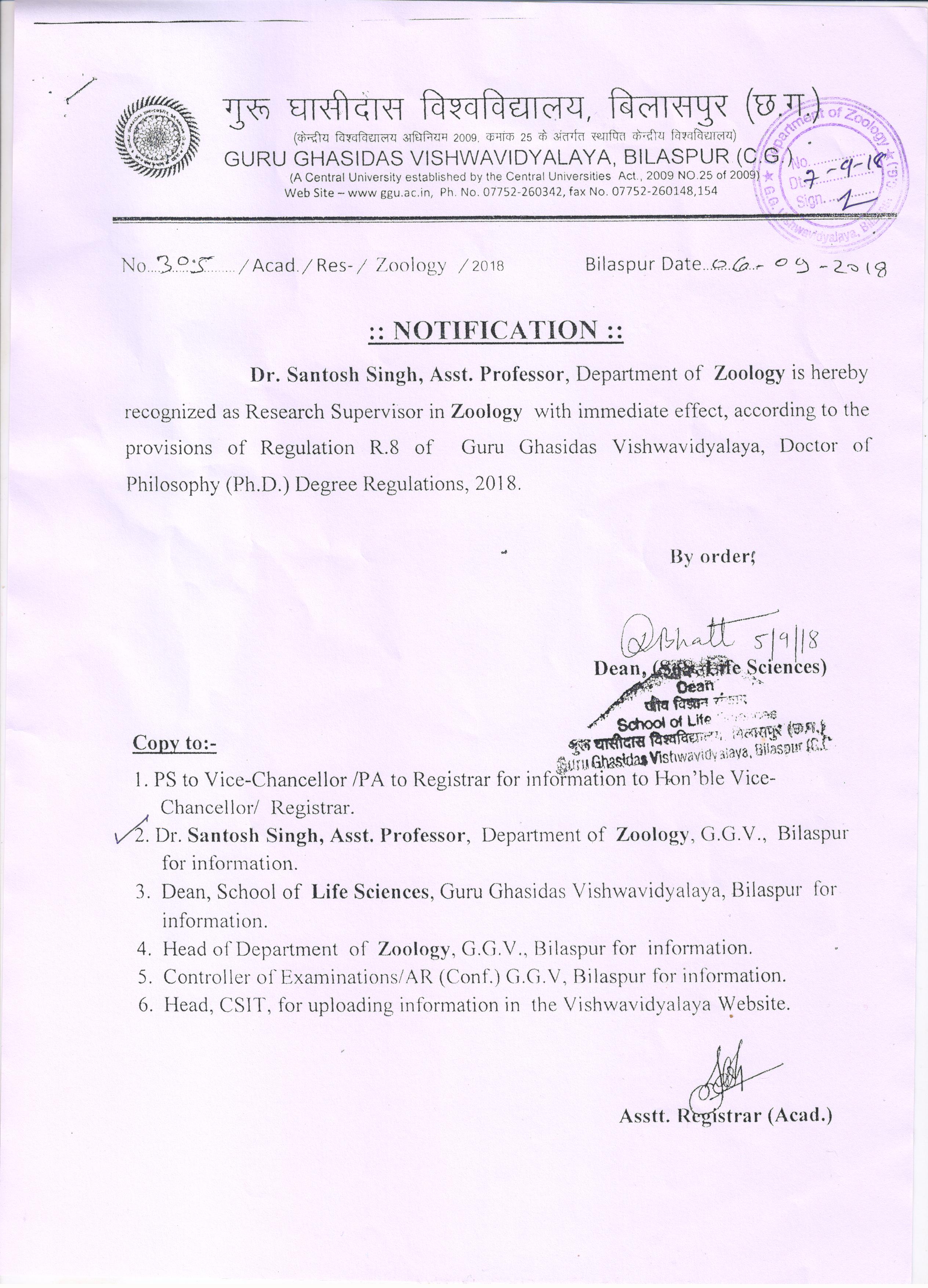 Guru Ghasidas Vishwavidyalaya, Bilaspur | School of Studies of Life Science