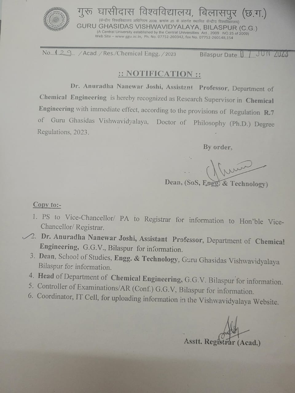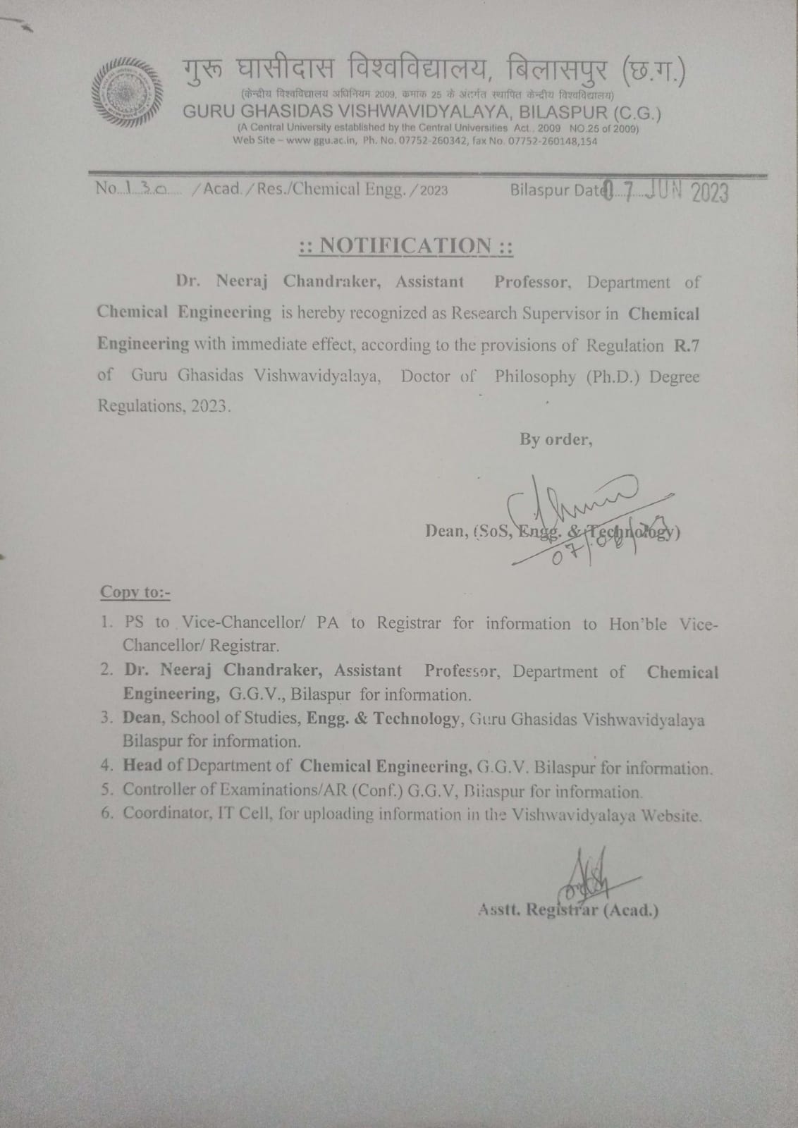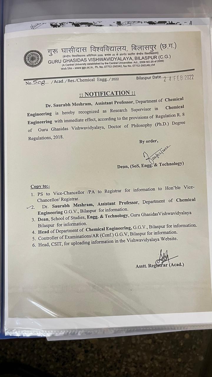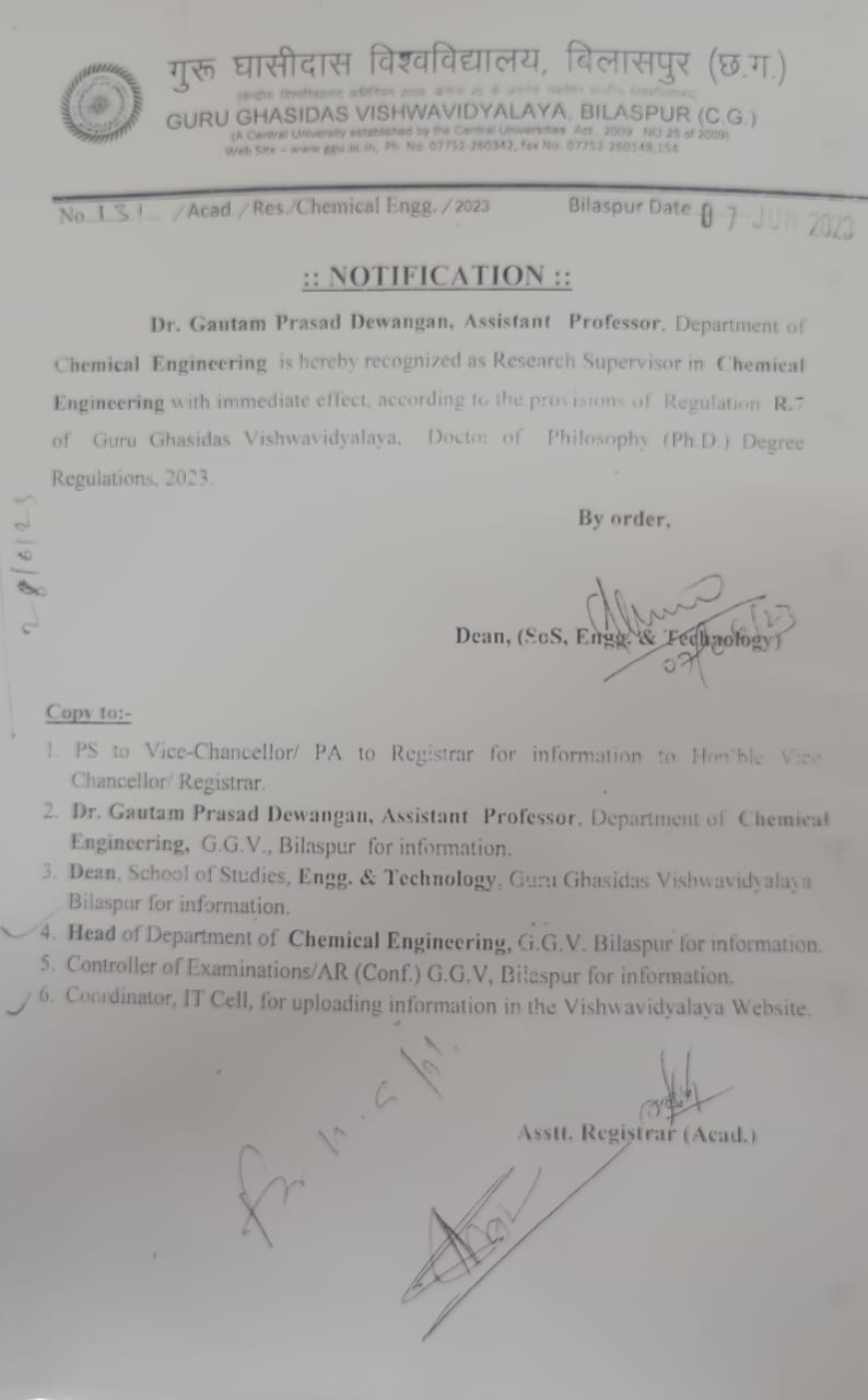 Appointment as Ph.D. Supervisor_Dr. Gautam Prasad Dewangan