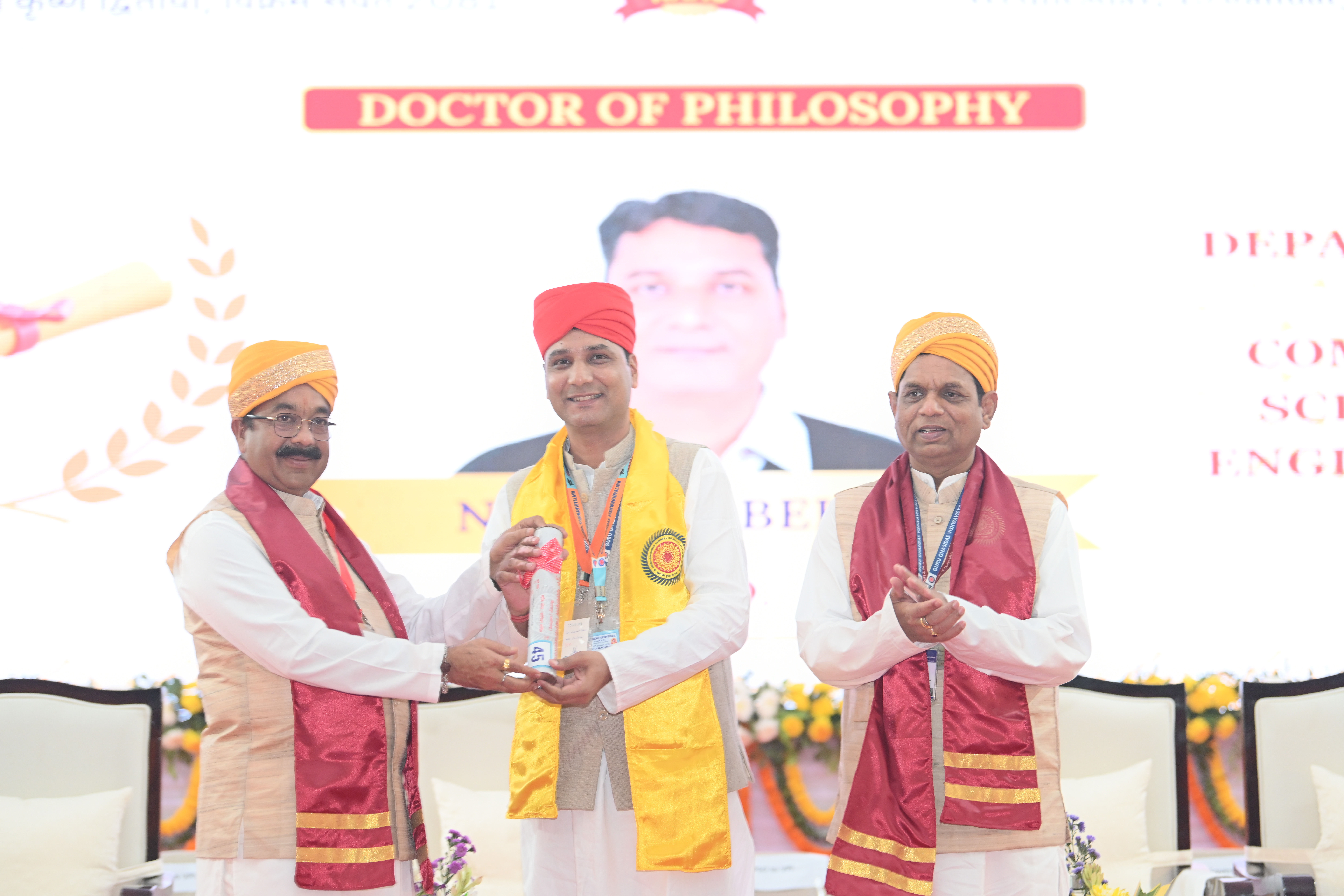 One of our Faculty received his Ph.D Degree in the last Convocation through the Dy CM, Govt of Chattisgarh alongwith Hon'ble Vice Chancellor, GGV, Bilaspur.