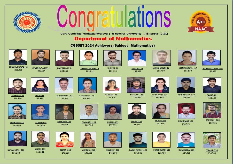 गुरु घासीदास विश्वविद्यालय,बिलासपुर | गणितीय और संगणकीय विज्ञान अध्ययन संकाय
