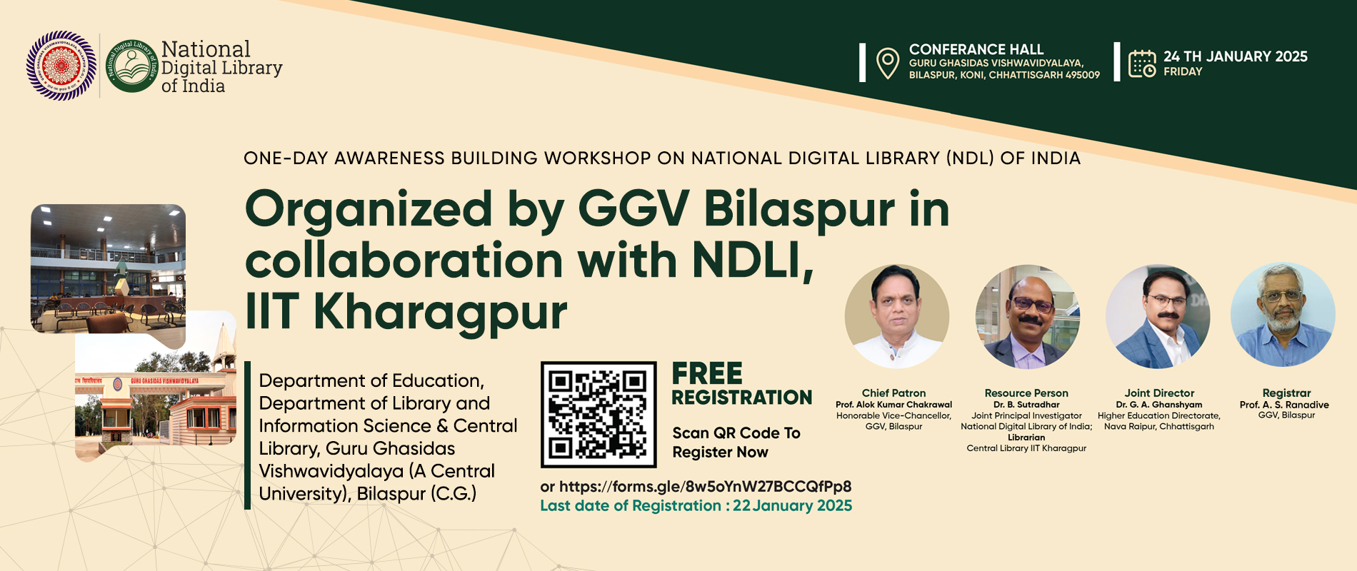 One-Day Awareness Building Workshop on National Digital Library (NDL) of India Jointly Organised by GGV Bilaspur in Colaboration with NDLI, IIT Kharagpur on January 24, 2025.