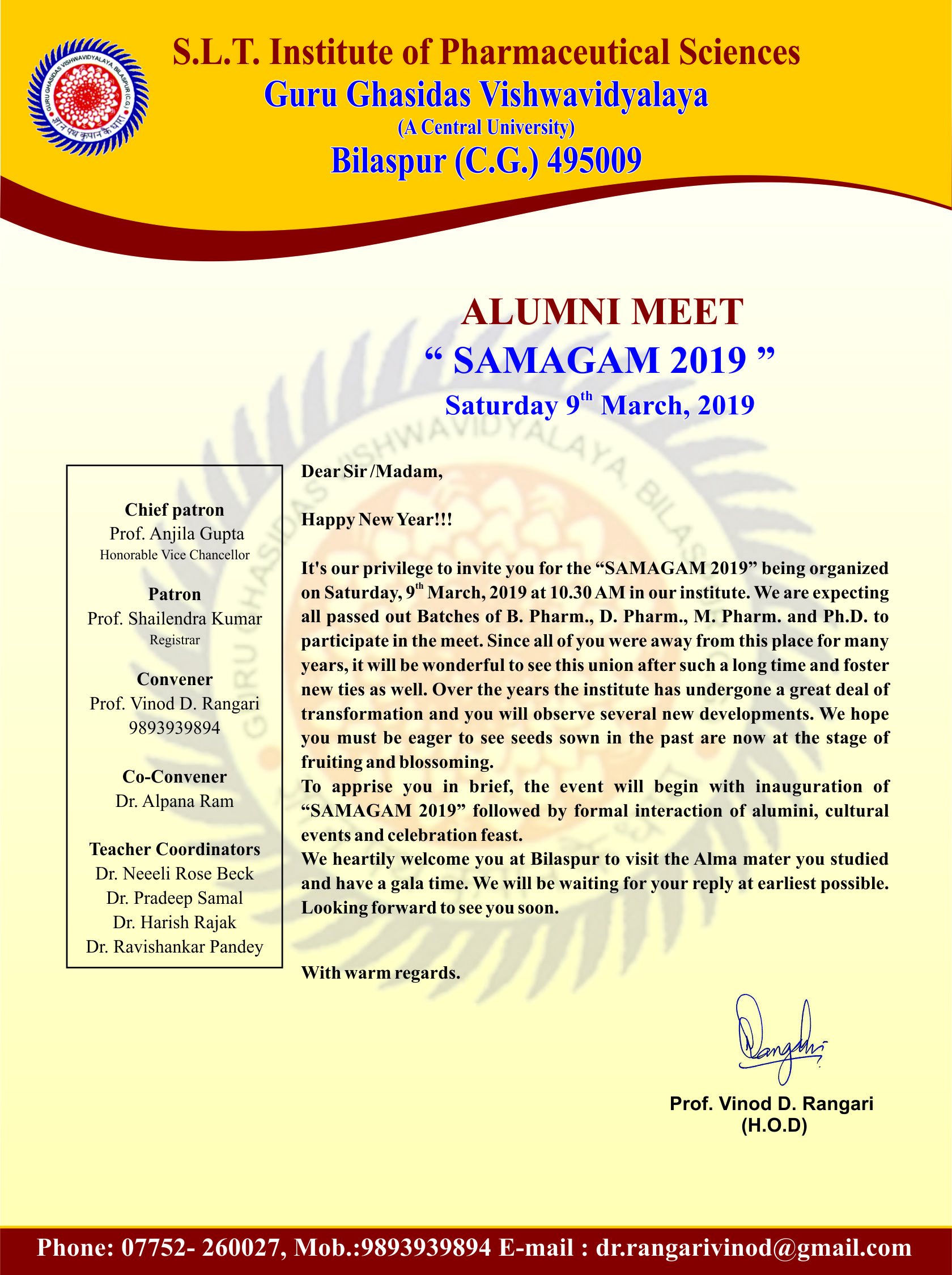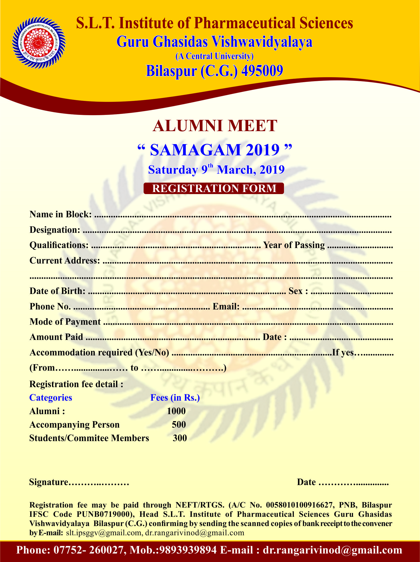 Registration form for Alumni Meet "SAMAGAM 2019" on SLT Institute of Pharmaceutical Sciences (09 th March 2019)